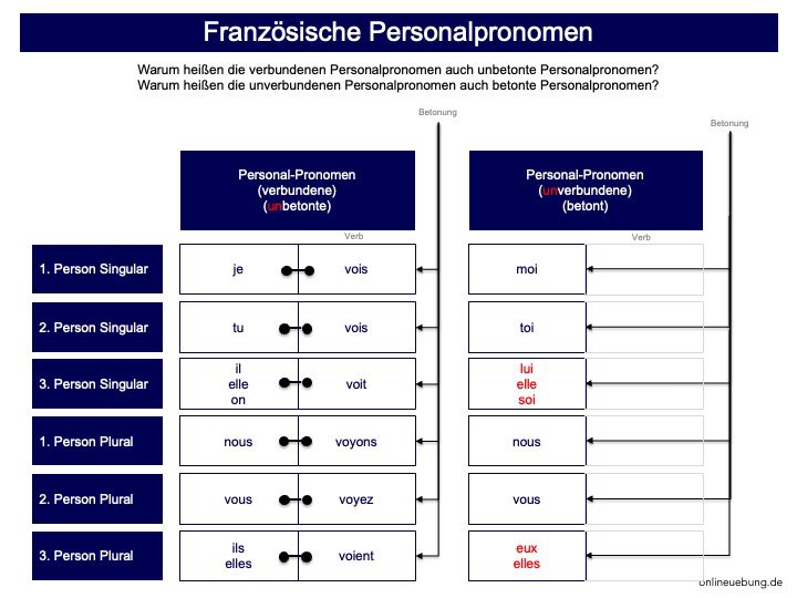 - Definition: verbundene Personalpronomen stehen in Verbindung mit einem Verb. Zum Beispiele: être